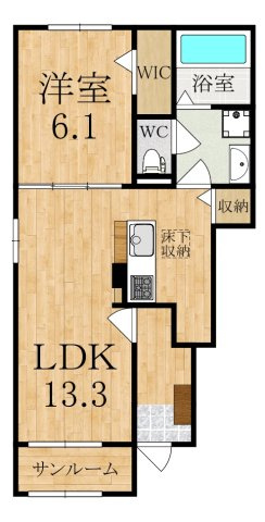洋室 6.1帖/洋室 6.5帖/LDK 13.3帖 - 向き