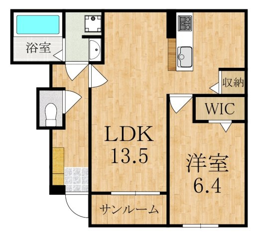 洋室 6.4帖/洋室 5.3帖/LDK 13.5帖