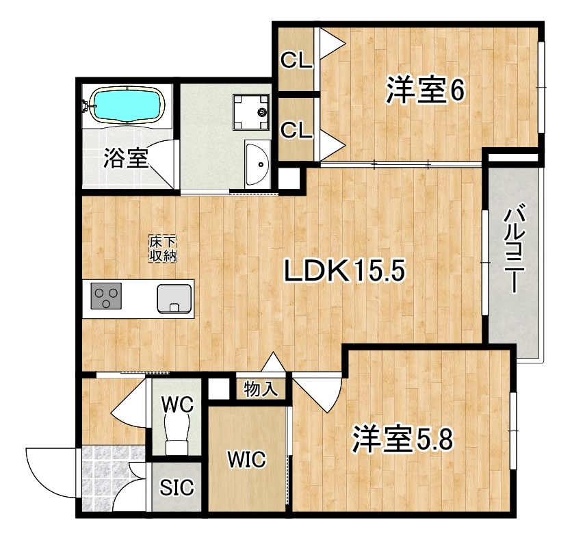 2LDK/57.47㎡/築4年